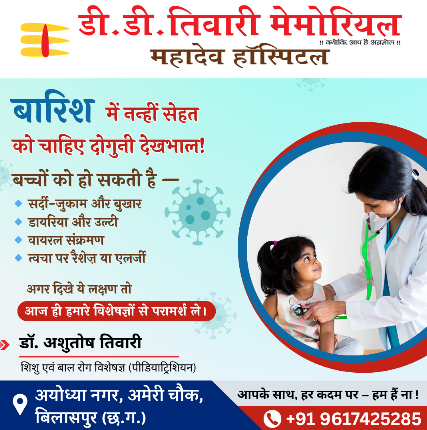 Mahadev Hospital Bilaspur is committed to child wellness and family health. With modern medical technology, personalized attention, and a compassionate team, Dr. Tiwari ensures your child’s health, happiness, and future are in safe hands.