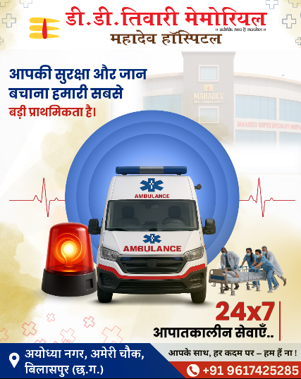 Address: Mahadev Hospital, Ayodhya Nagar, Ring Road, near Ameri Chowk, No. 2, Nehru Nagar, Bilaspur, Chhattisgarh 495001